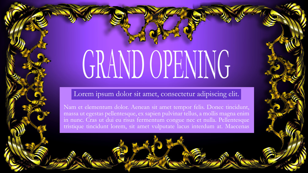 The cover of the Grand Opening features a sleek, classic golden style, exuding professionalism and sophistication. The design incorporates a refined palette of golden colors—such as gold, brass, and engrave—to create a polished and contemporary look. The title, "Grand Opening," is boldly centered in a clean, classic font, emphasizing clarity and focus. Subtle gradients and golden textures add depth, while minimalistic geometric accents enhance the overall design without overwhelming it. The layout is balanced and uncluttered, embodying a formal and traditional aesthetic.